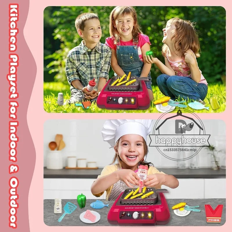 Multiple Play Food Options – The play kitchen accessories toys come with a variety of toy food that can be “fried” in the fryer pan, including French fries, Fish, Steak, Peppers, Eggs & Corn. Perfectly reproduces the appearance of real food, bringing children a more realistic perception of ingredients. The color of food toy will change after cooking, perfect for pretend play, kitchen game, Christmas gift, birthday gift or any gift for boys and girls.