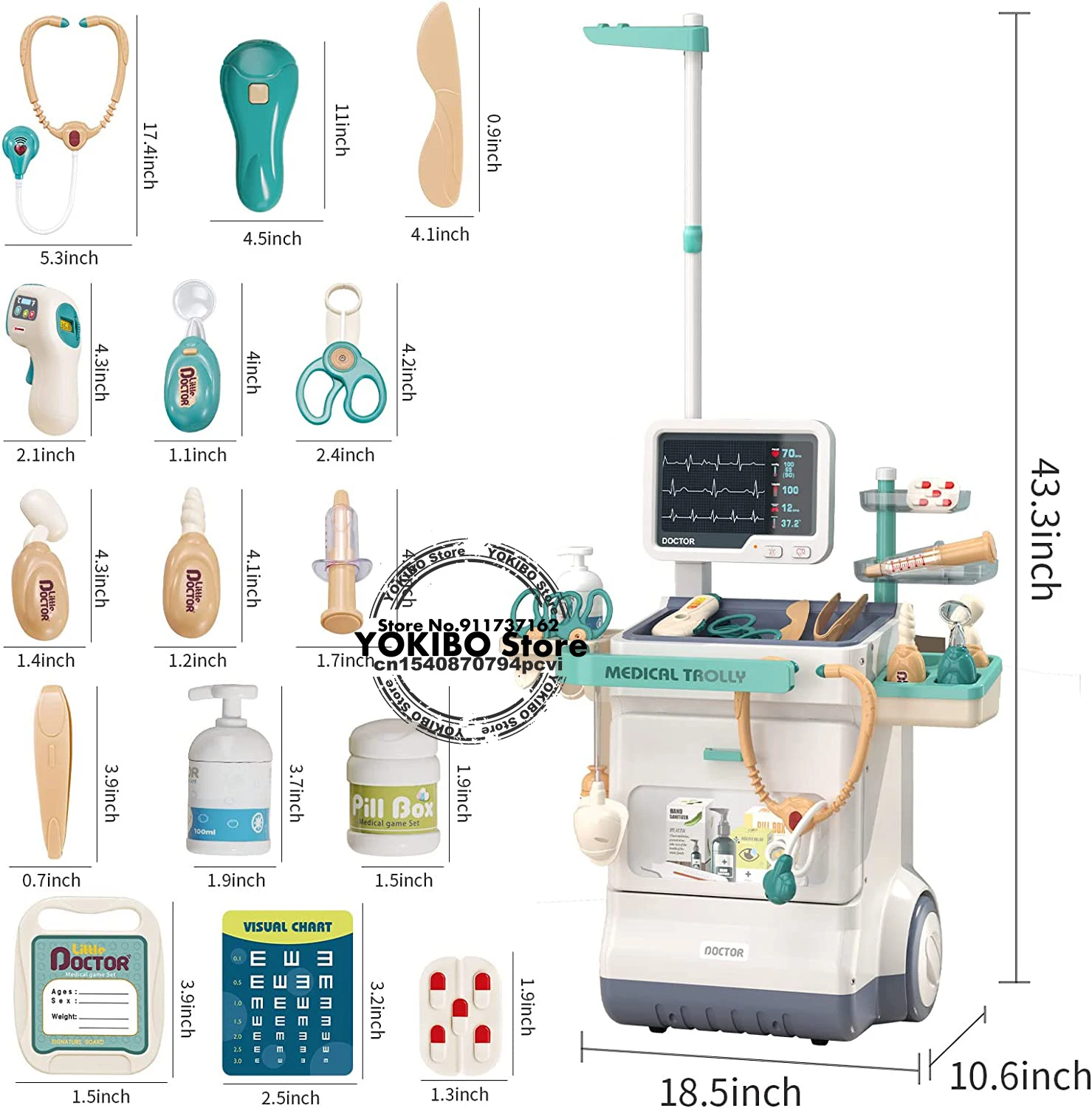 【A complete fun of medical tools】The doctor cart kit comes with a syringe, stomatoscope, thermometer, eye chart, X-ray and more. The Upgraded stethoscope produces an authentic real-life heartbeat sound and light effect. Free telescopic measuring rod at any time to record the child's height.