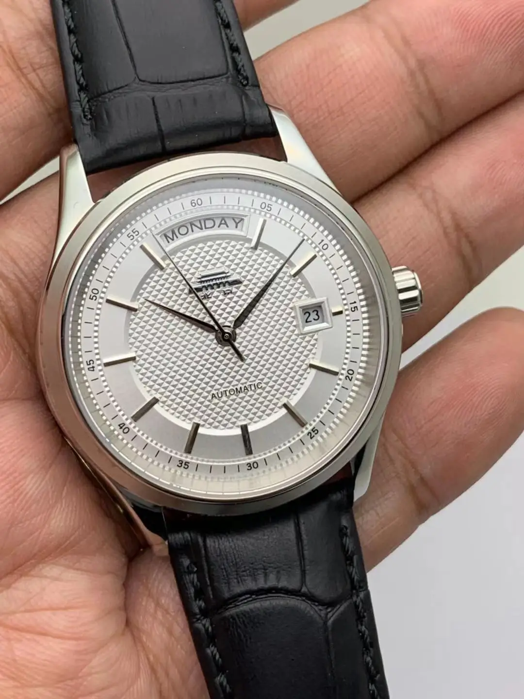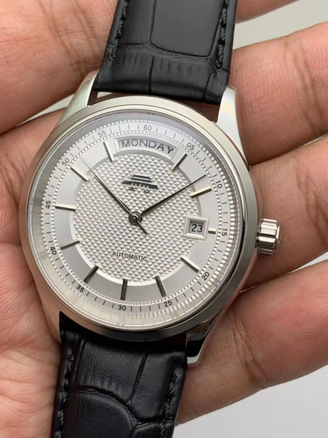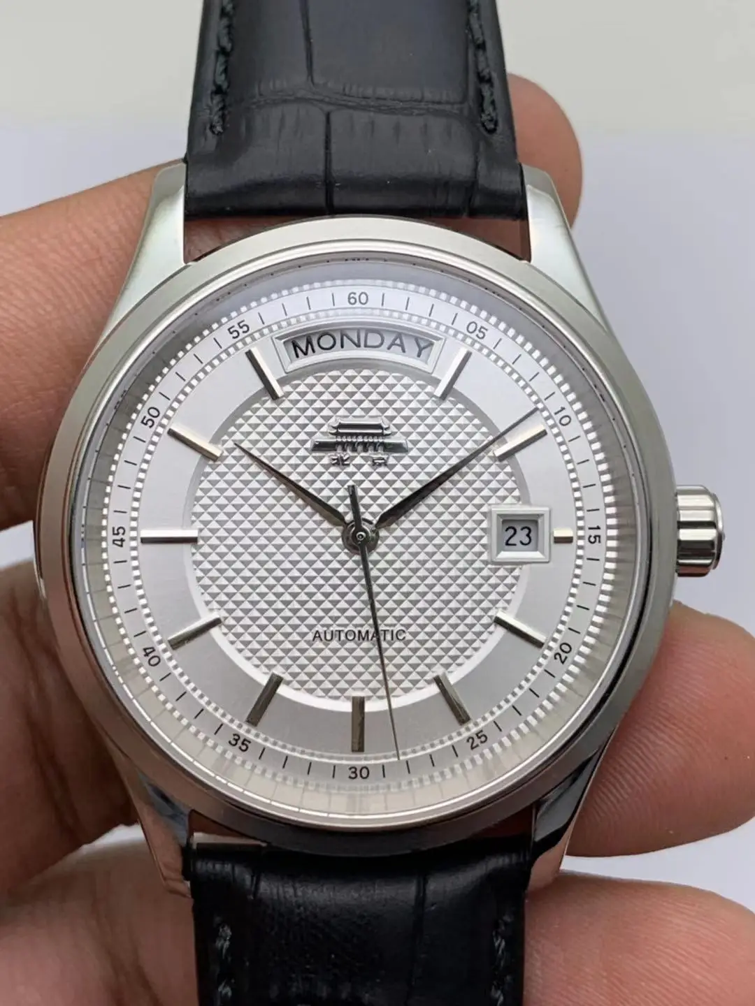 [Movement]: 27-diamond movement produced by Beijing Watch Factory, fully automatic mechanical movement, dual calendar function