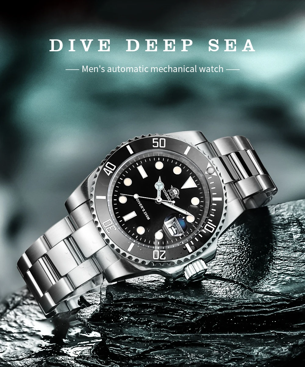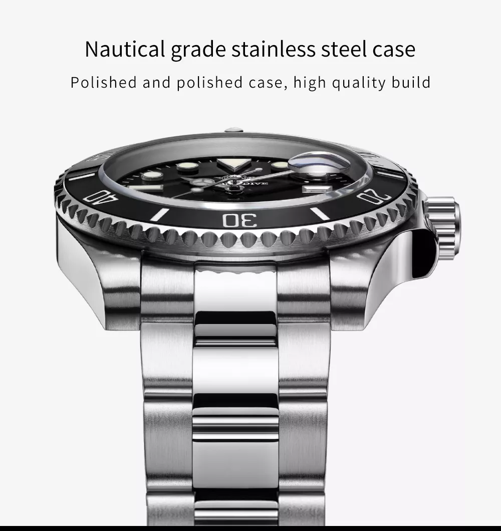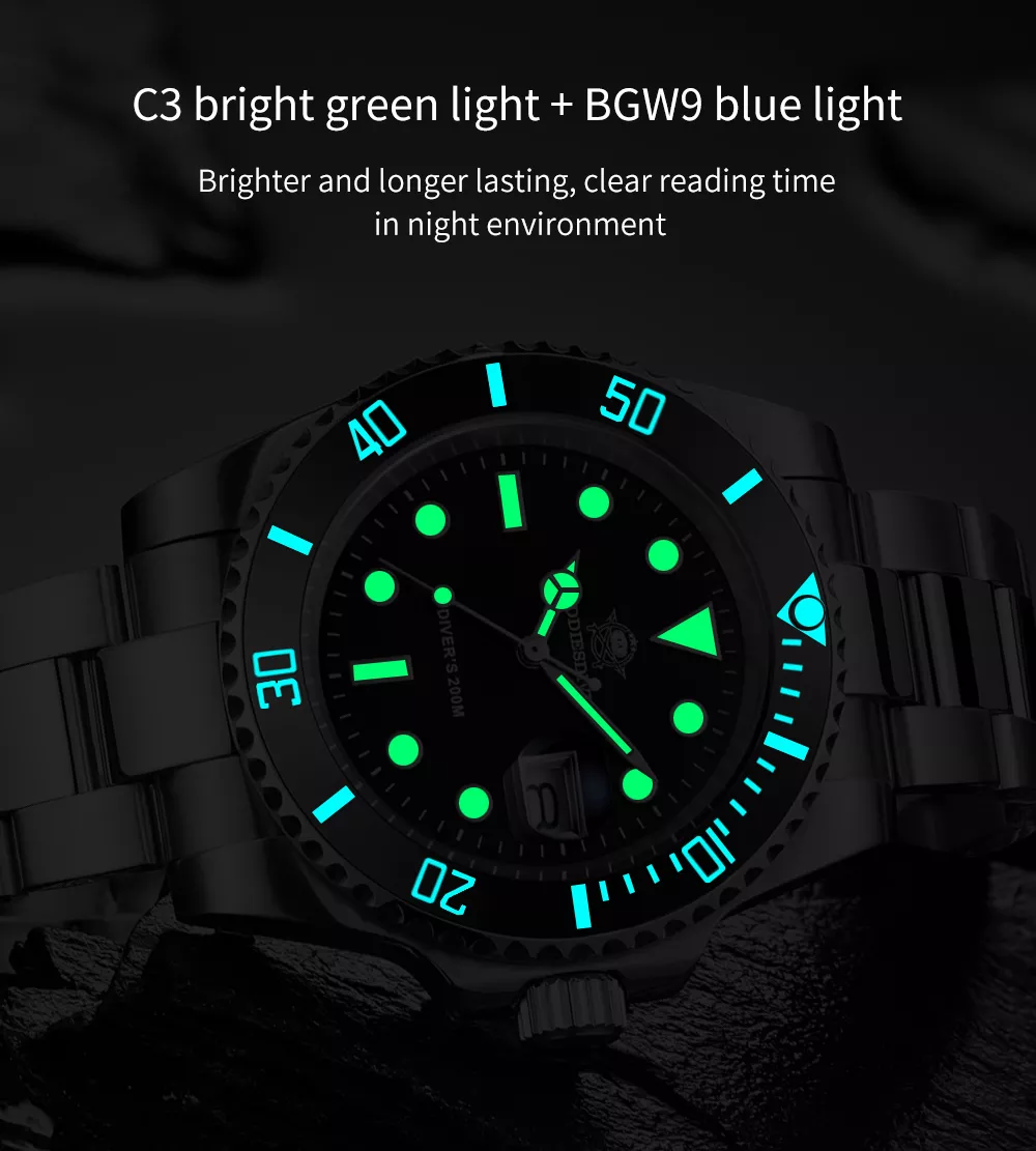 The classic case and screw-in waterproof crown make the waterproof level into 200 Meters. The ceramic bezel improves the durability of the watch.All these features can not be done by other similar diving watches.