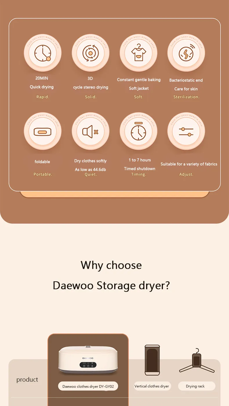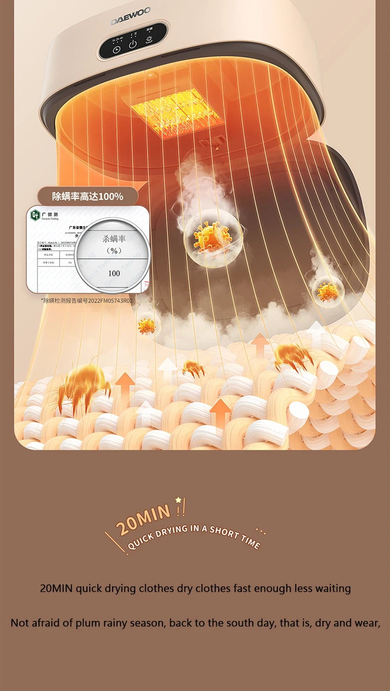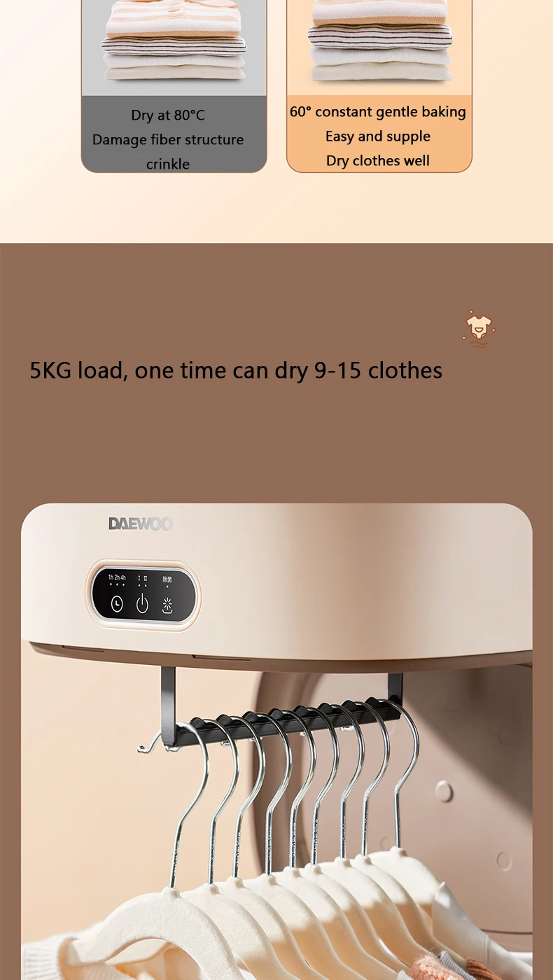 Introducing the Daewoo Multifunctional Electric Dryer (Model Number: DY-GY02) – your ideal companion for hassle-free and efficient clothes drying at home. This innovative dryer is designed to cater to your laundry needs with advanced features and user-friendly functionality.