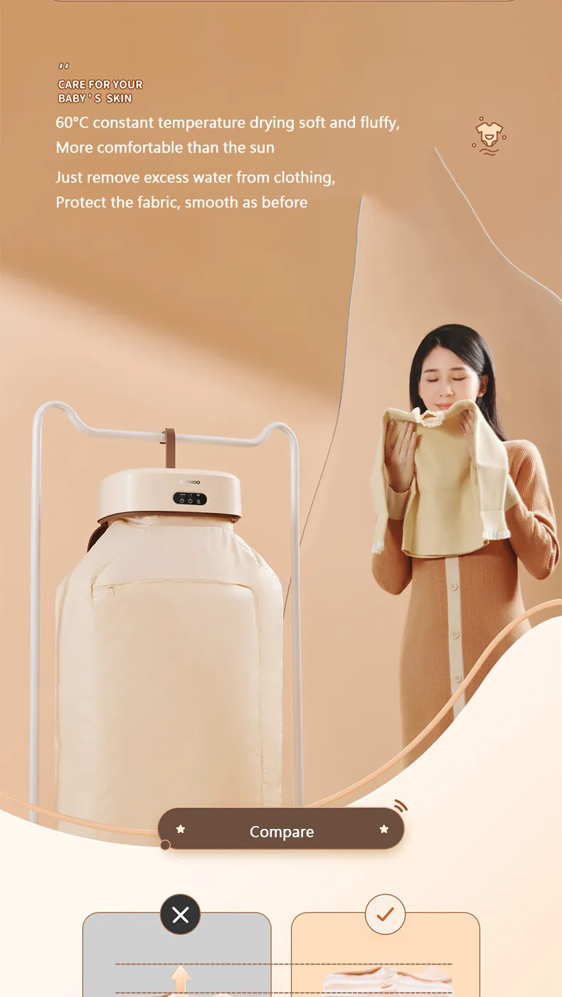 - Versatile Usage: Ideal for a variety of fabrics, this multifunctional dryer can handle different types of clothing, ensuring flexibility in your laundry routine.