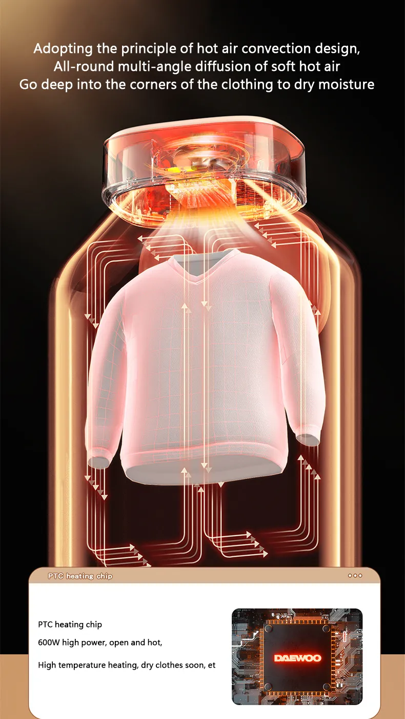 - PTC Heating Technology: The dryer utilizes advanced PTC heating technology, ensuring quick and efficient drying of your clothes.