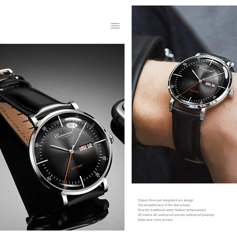 Carnival Top Brand Luxury Automatic Watch for Man Mechanical Watch Leather Sapphire Waterproof Sports Wristwatch Male Relogio