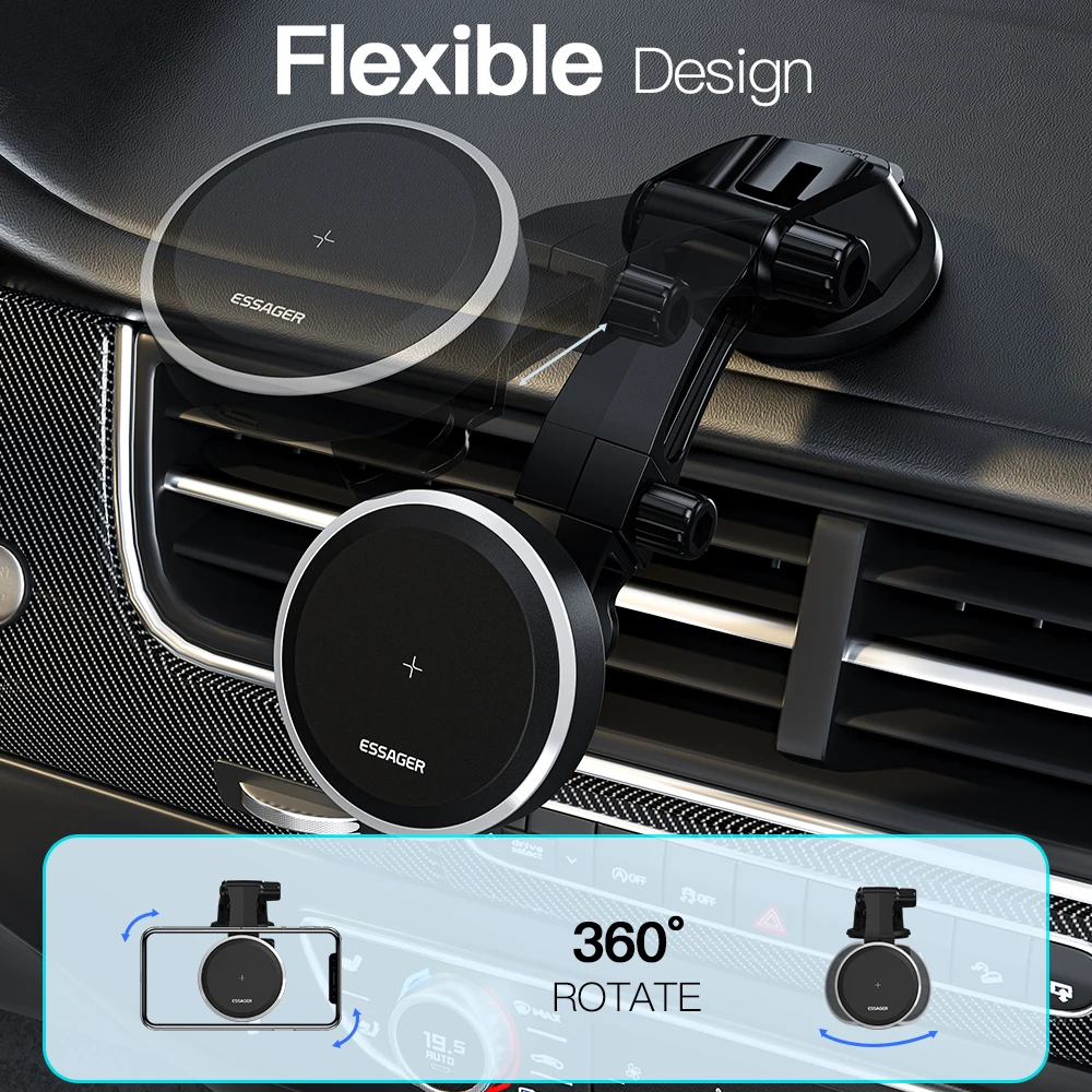Upgrade your in-car experience with the Essager RGB Magnetic Car Phone Holder featuring a powerful Qi 15W Wireless Charger. Crafted for iPhone 14, 13 Pro Max, Samsung, and universal compatibility, this holder stands out for both its functionality and style.