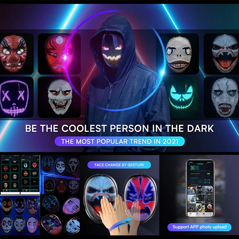 Unleash your imagination and make a lasting impression with our Bluetooth Programmable LED Mask. Order now and become the center of attention at every event!
