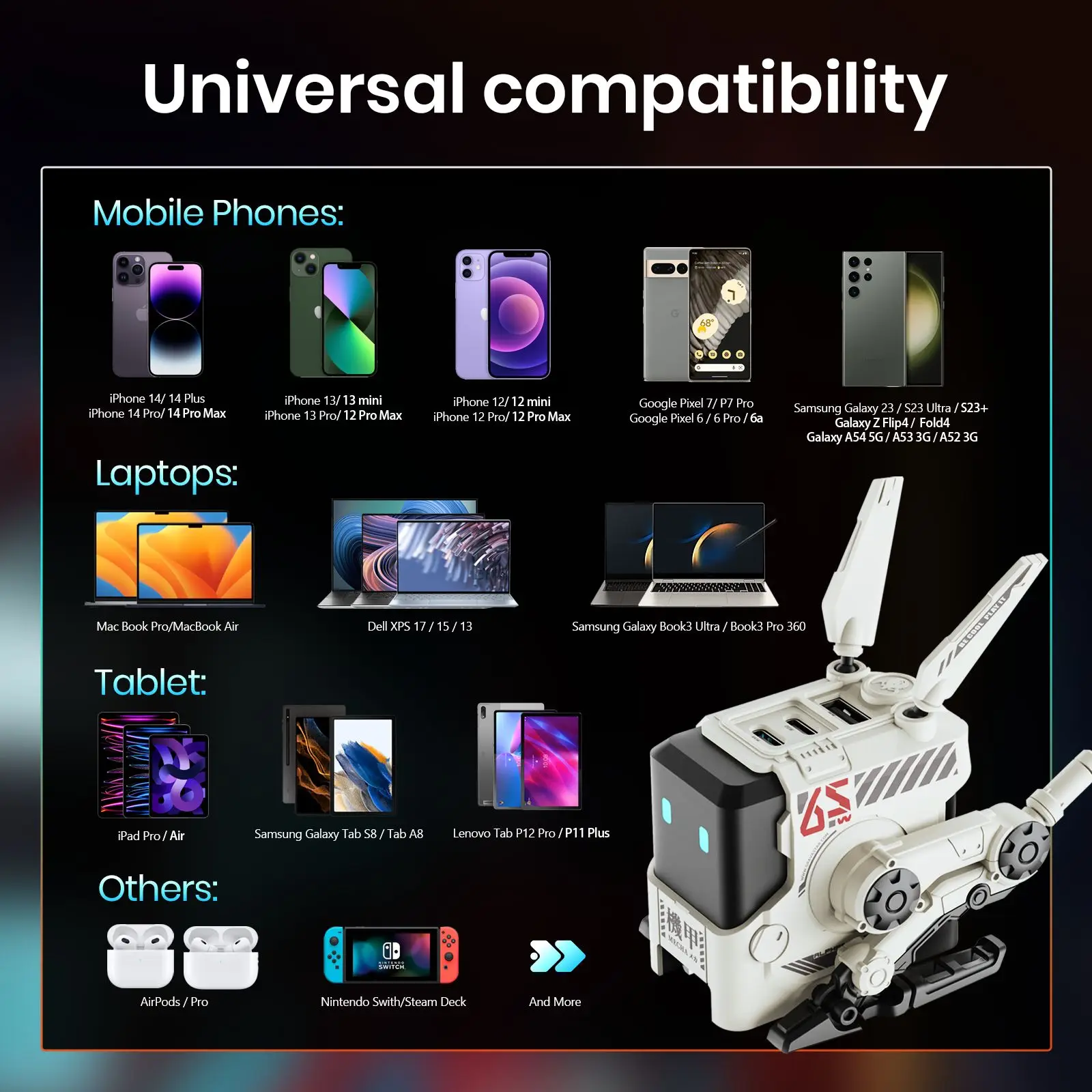 🔌 Universal Compatibility: Featuring Type-C connectors, our charger is compatible with iPhones, Xiaomi, Huawei, and more, ensuring convenience for all your devices.