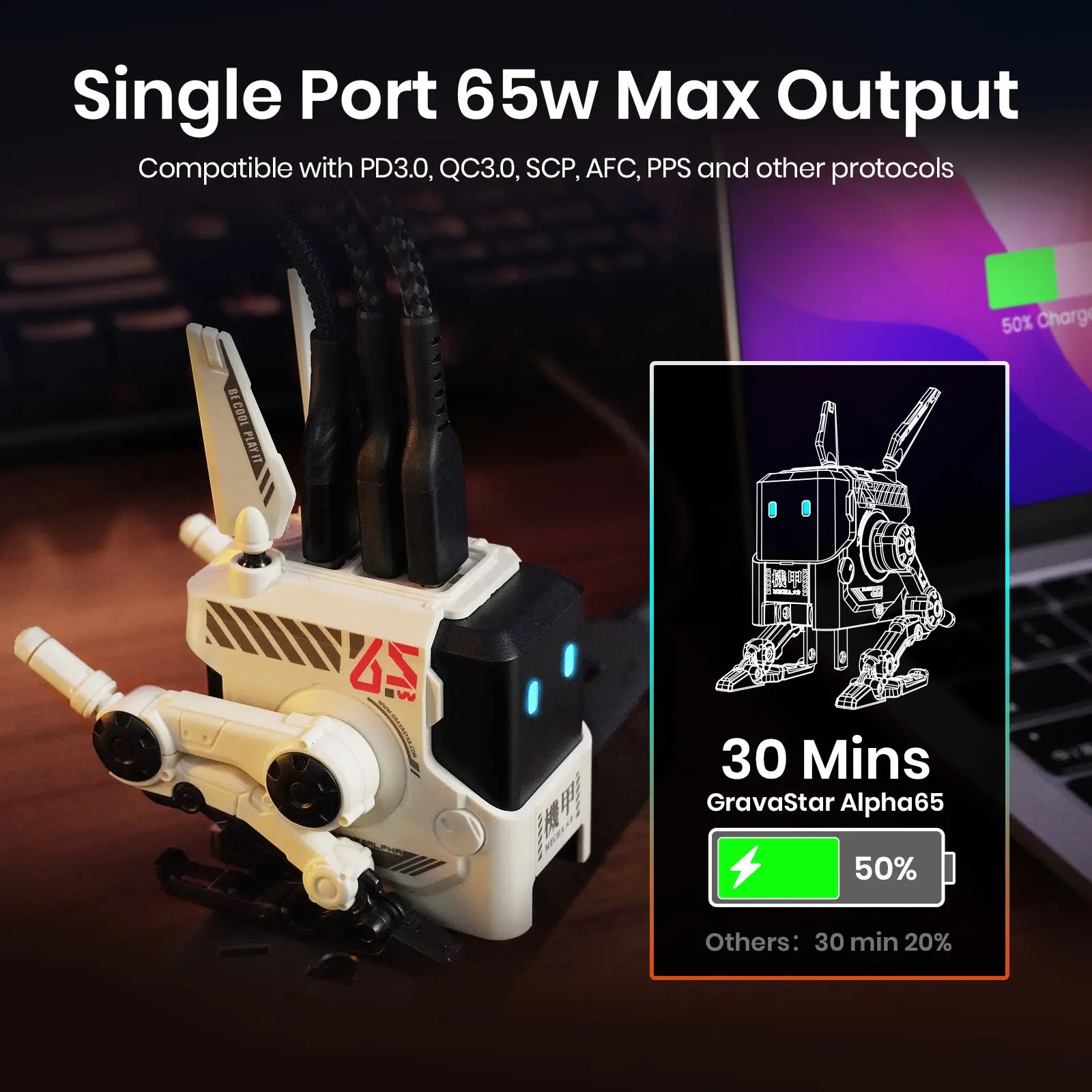 2. Gravastar ALPHA65 CHARGER: The pinnacle of innovation, ALPHA65 CHARGER delivers an astonishing 65W charging power, setting a new standard for quick charging.