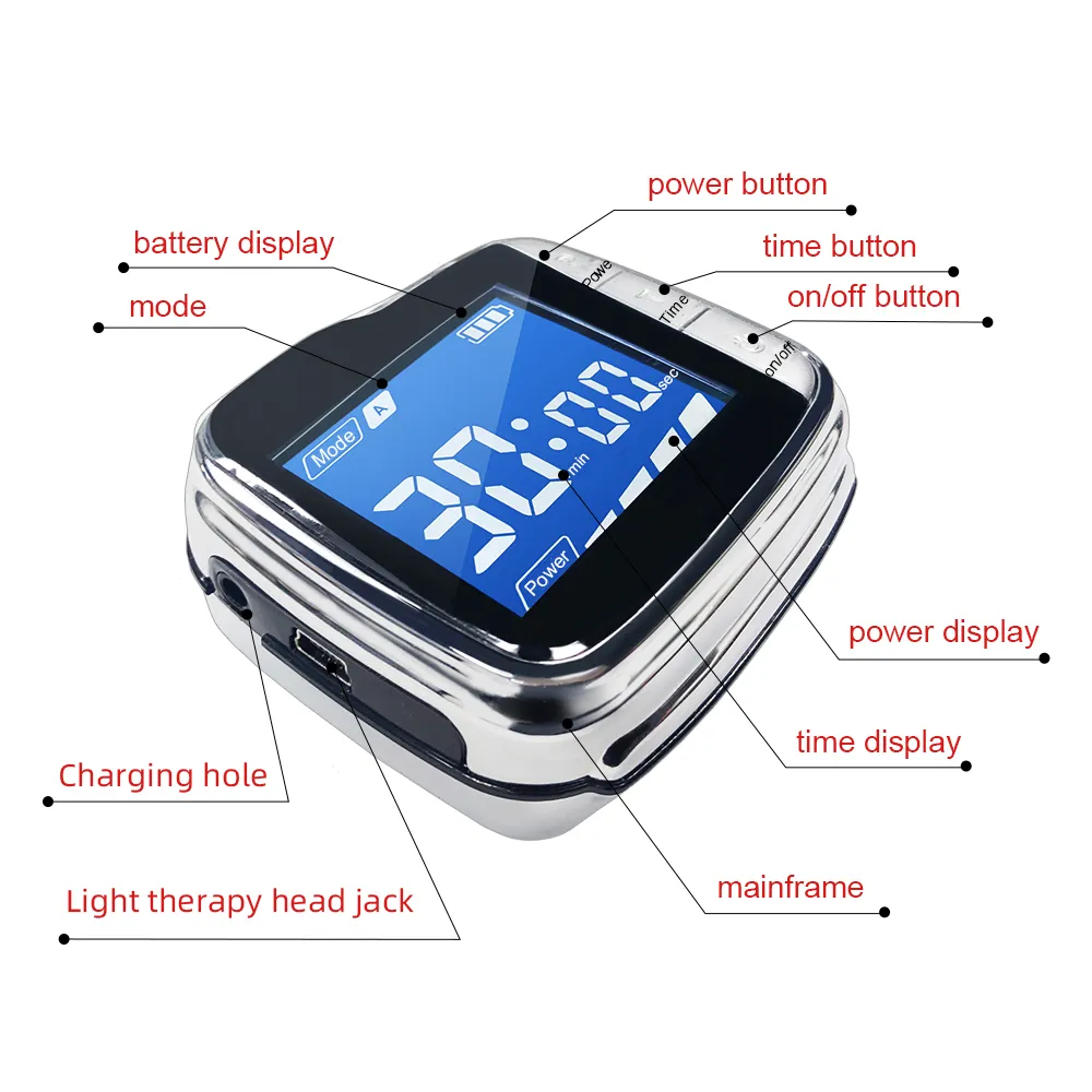 The LASTEK 650nm 5mw Laser Watch Therapy Device is designed for various health applications, including high blood pressure, hyperlipidemia, diabetes, and more.