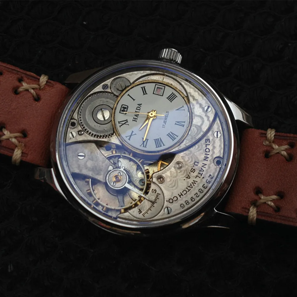 Handmade original watch antique pocket watch movement, equipped with fully automatic mechanical movement personality novel, only one piece in stock. (Decades of old pocket watch accessories have traces of time, don’t buy it if you mind)