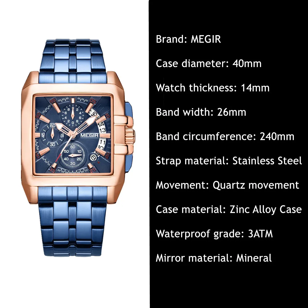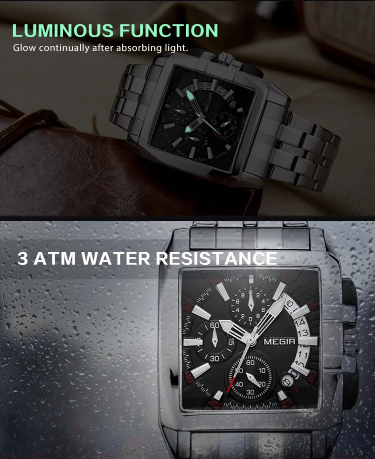 ✨5. All watches are shipped in a black packaging box with MEGIR logo, ensuring that there will be no damage during transportation, making it the best choice for gift giving.