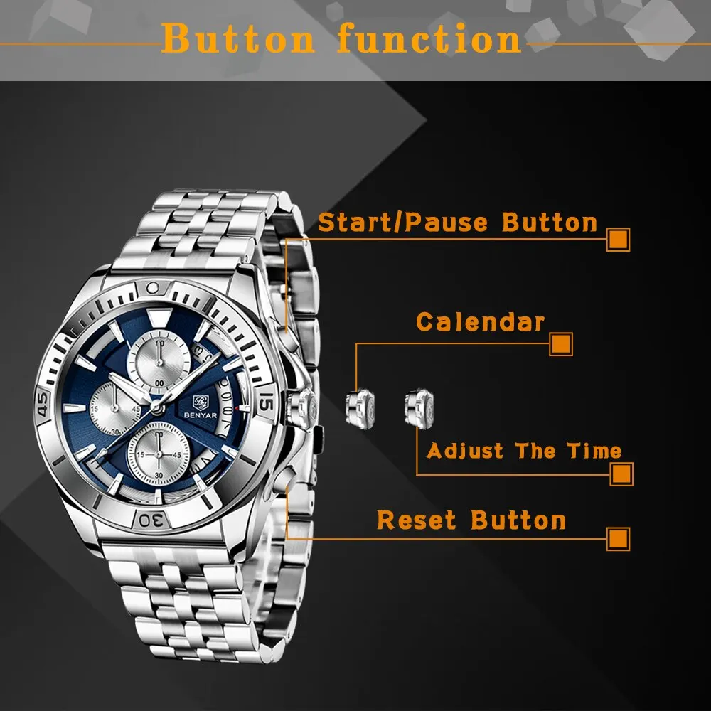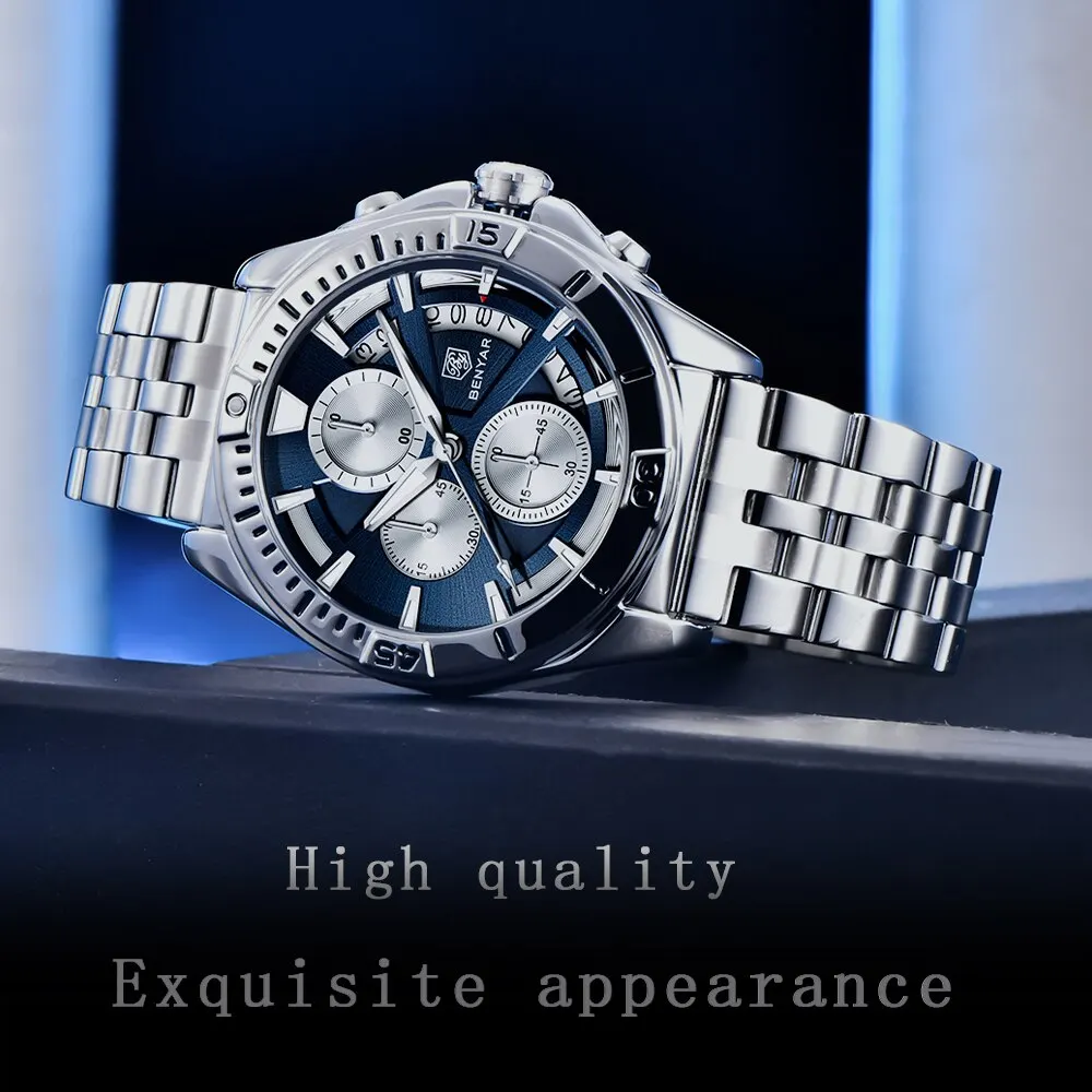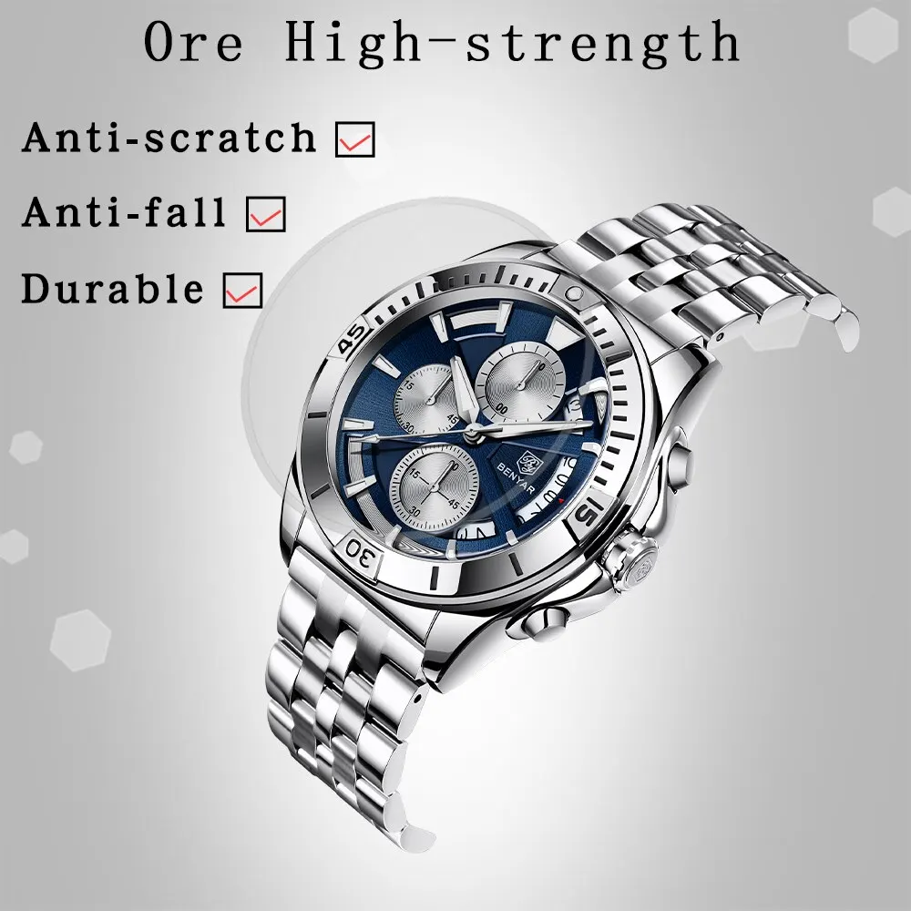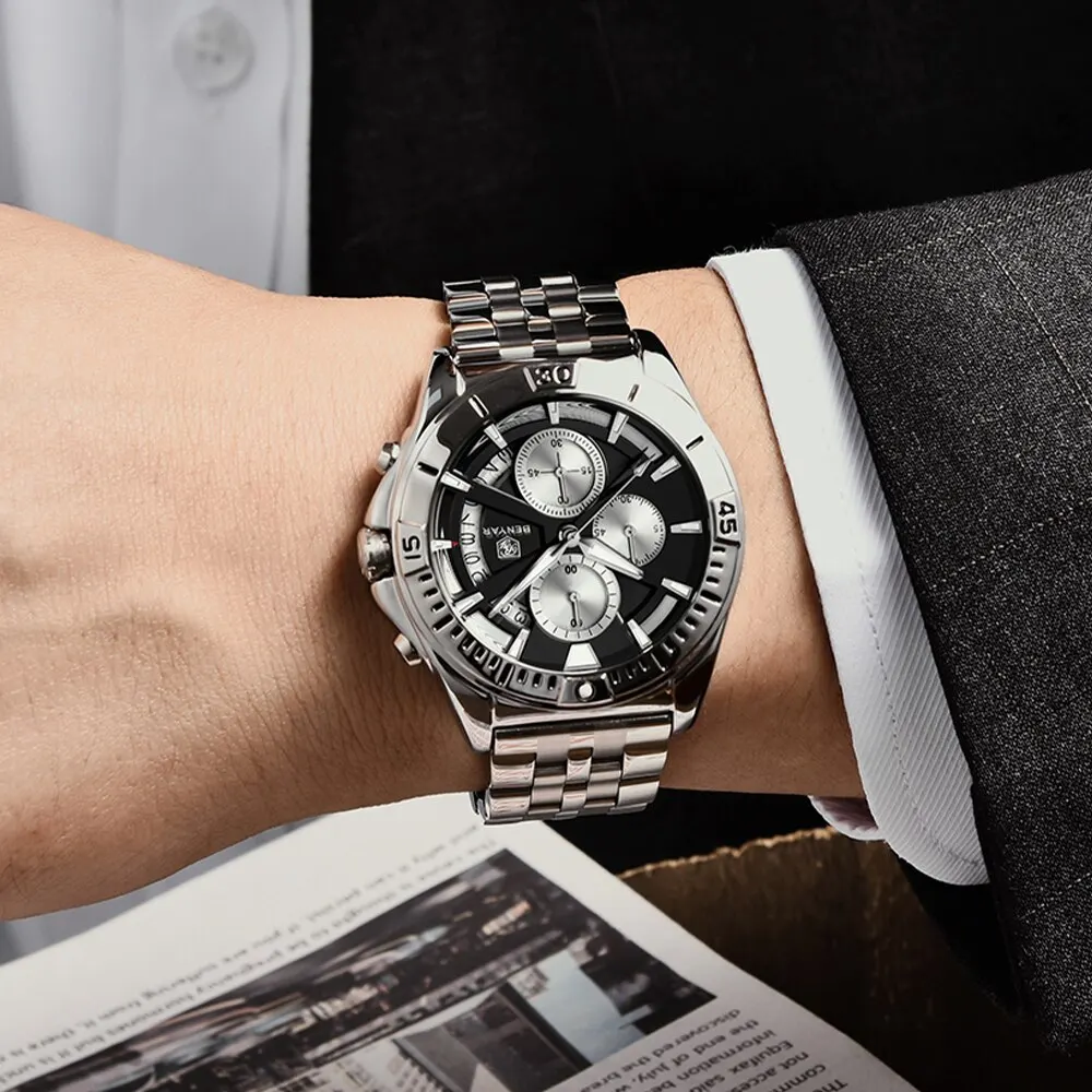 Luxury Quartz Watch Stainless Steel Chronograph Fashion Men Watch