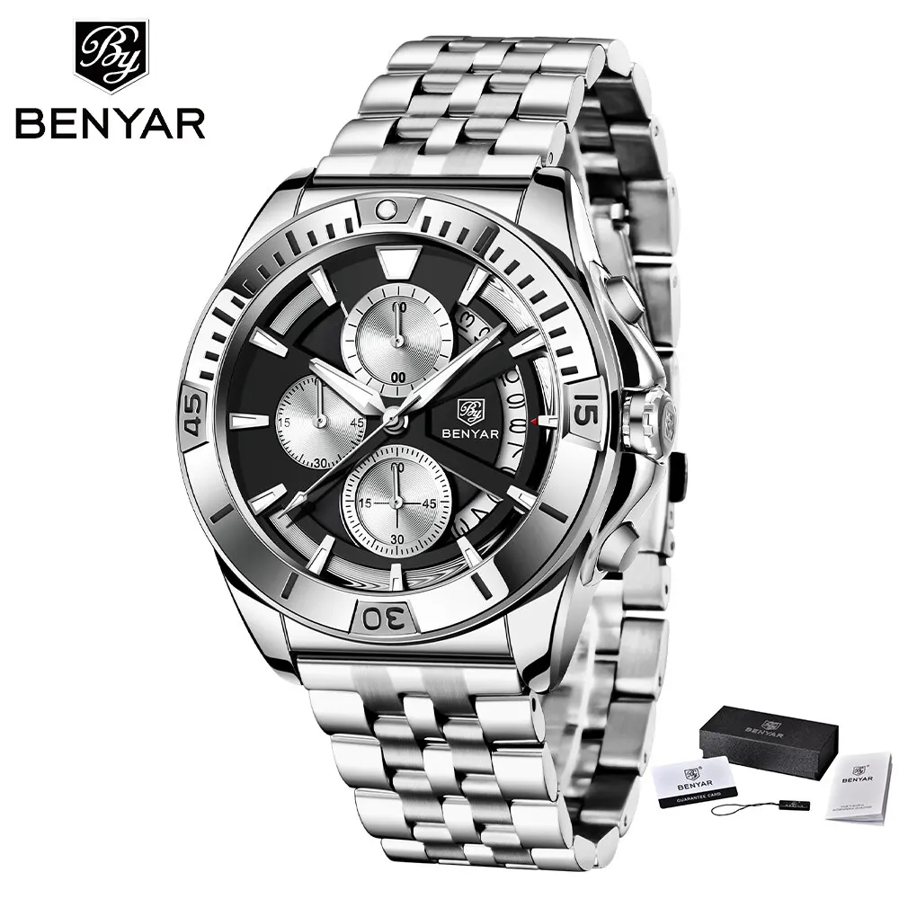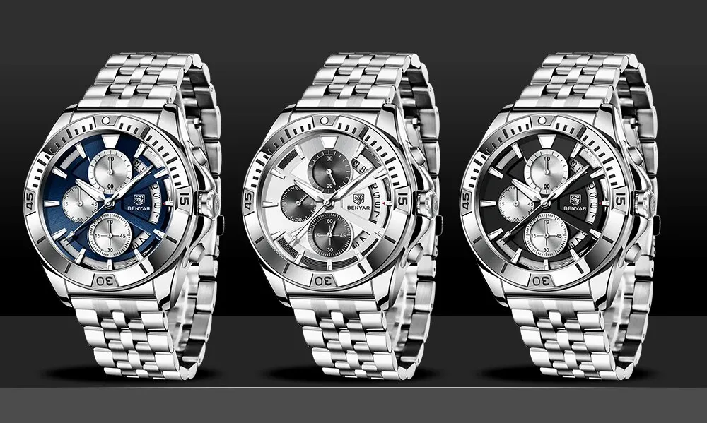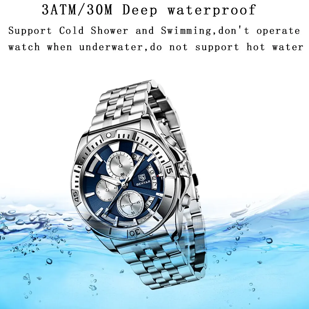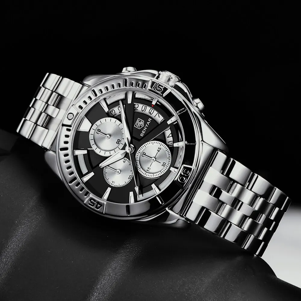 Luxury Quartz Watch Stainless Steel Chronograph Fashion Men Watch