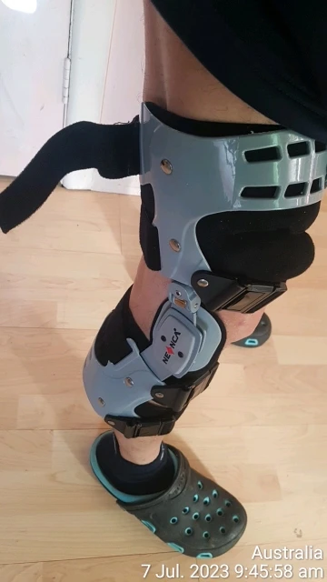 My husband received 3 bullet wounds which fractured his knee and femur, as a result of that he has had several operations so he has the need to use a device like this, he has felt a lot of support, he keeps the. piena and the knee instead, it is very functional, He uses it every day and especially at a very good price as we were looking for it in other stores. Thank you. Thank you.