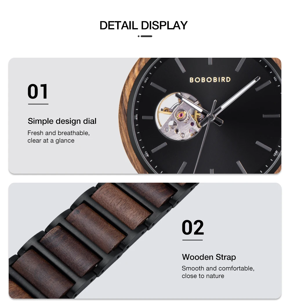 Returning to nature, advocating the charm of logs, and modern, practical and exquisite artistic design style reflect the brand mission of BOBO BIRD. Paying attention to smooth and ingenious design, delving into practical structural functions, and considering the new trends and fashions of the times, BOBO BIRD watches have a unique charm that naturally integrates into personal time.