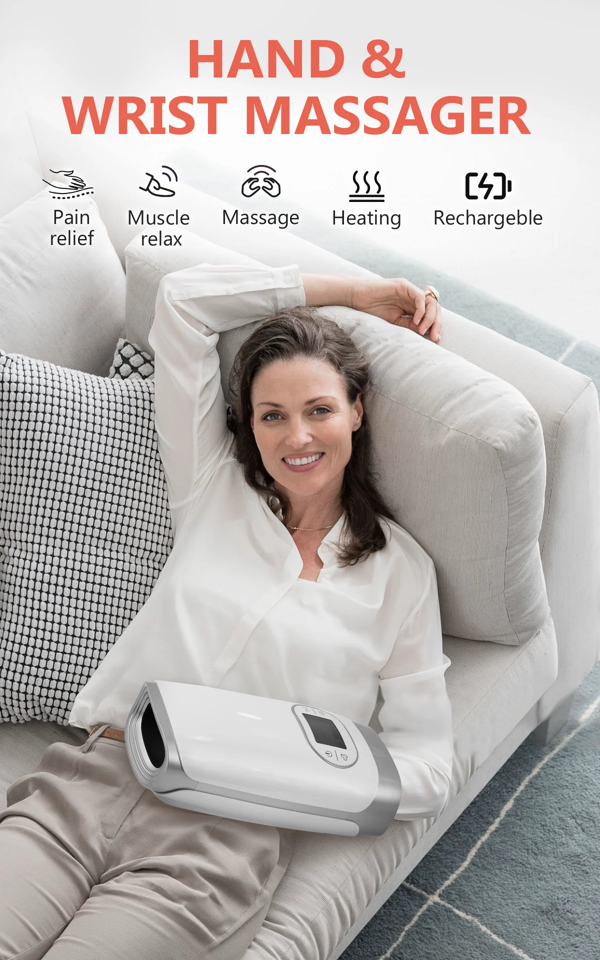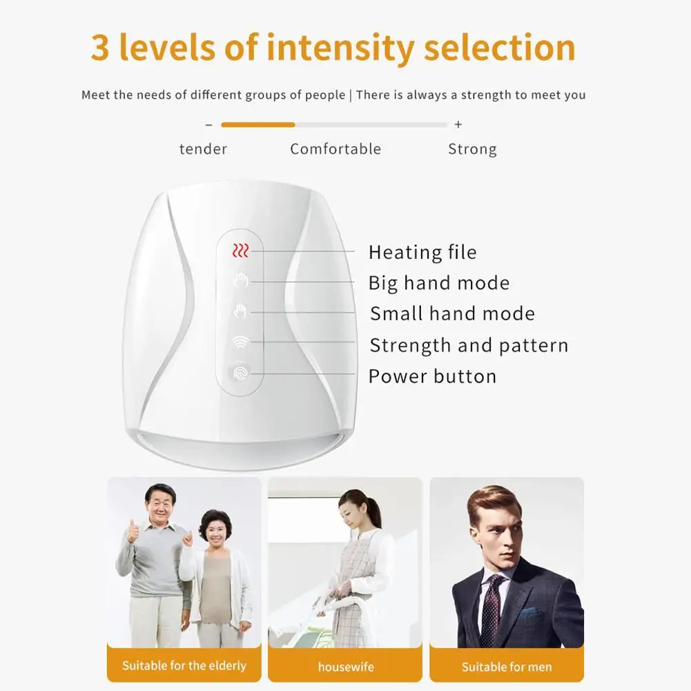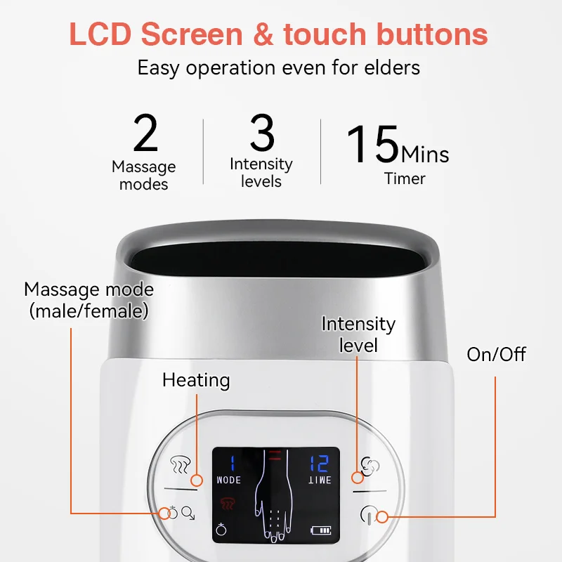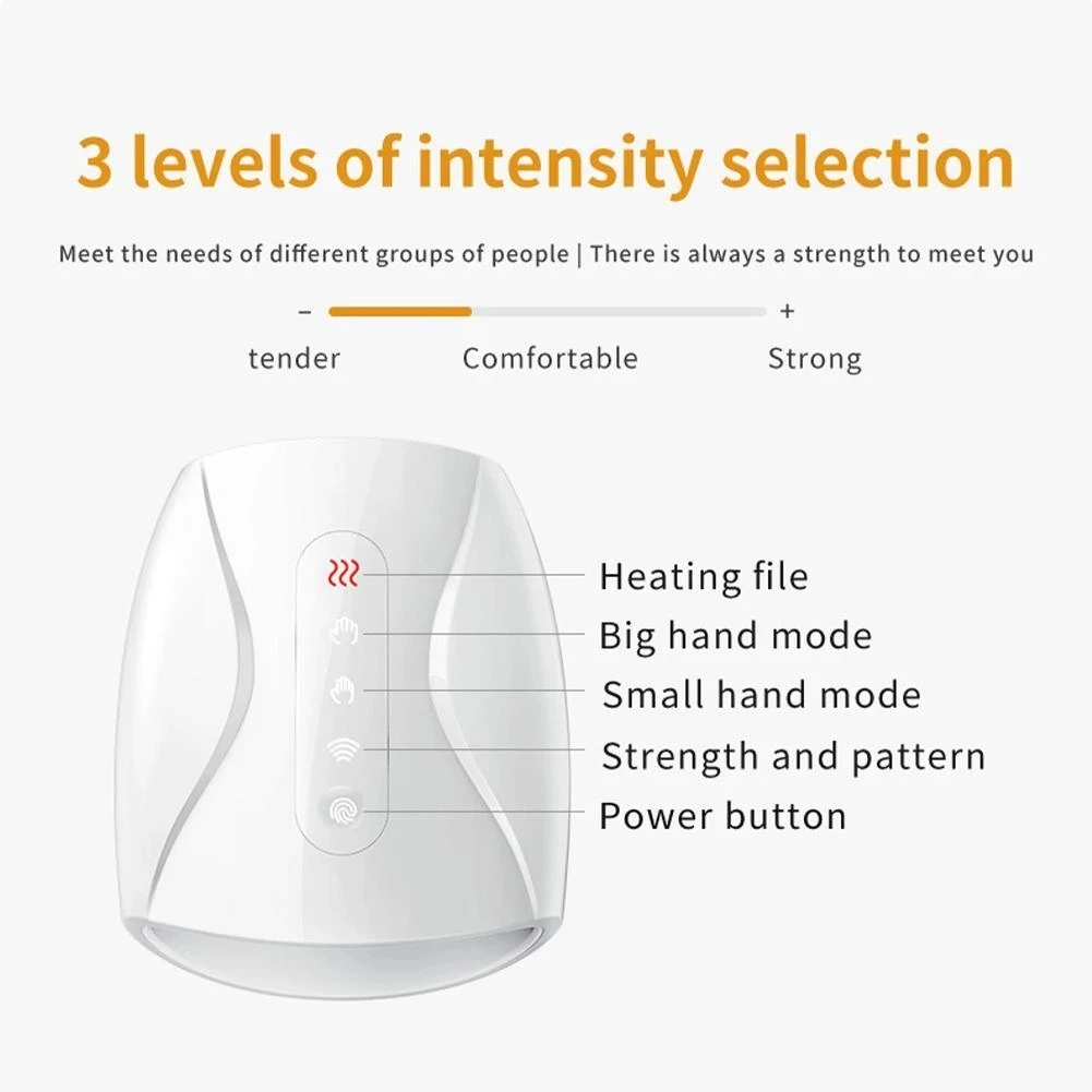 - Air pressure and heat compression target fingers, palm, and wrist acupoints, effectively relieving hand pain and tension.