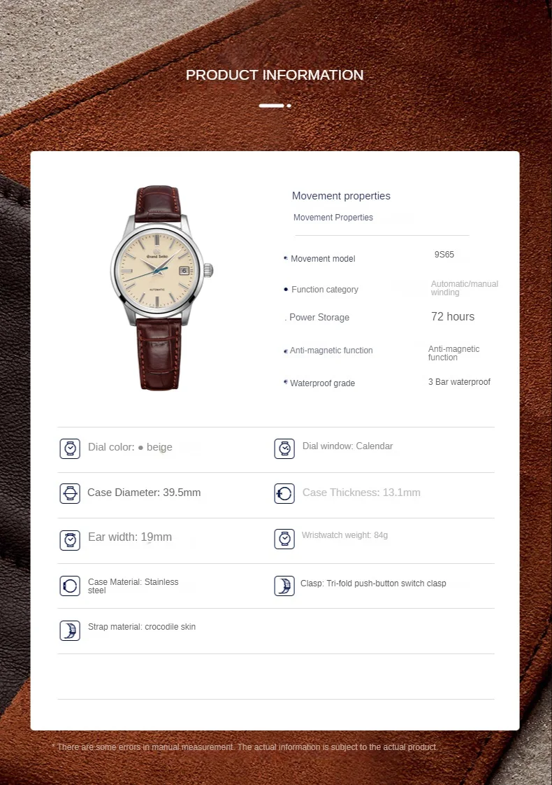 Original Grand Seiko SBGR261G Retro Cream Dial Top Luxury Men’s Chronograph