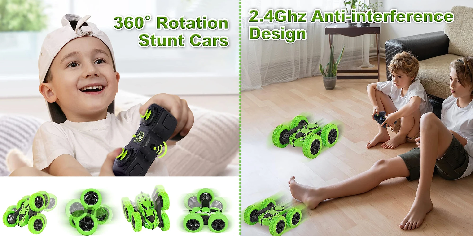Our RC Stunt Car is designed for kids who love adventure and excitement! It can tumble and flip at 360 degrees, and drive on both sides, which offers a thrilling and unique experience for children and even adults alike, with all-terrain performance, our remote control car can handle various terrains, including sand, lawn, stone road, and more, making it perfect for taking your stunts and races anywhere you want.