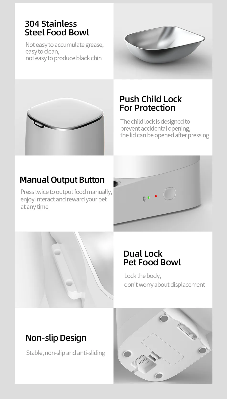 Just set the number of meals and the portions, the feeder can automatically feed your pet, no need to get up early, even when travelling, shopping and working.