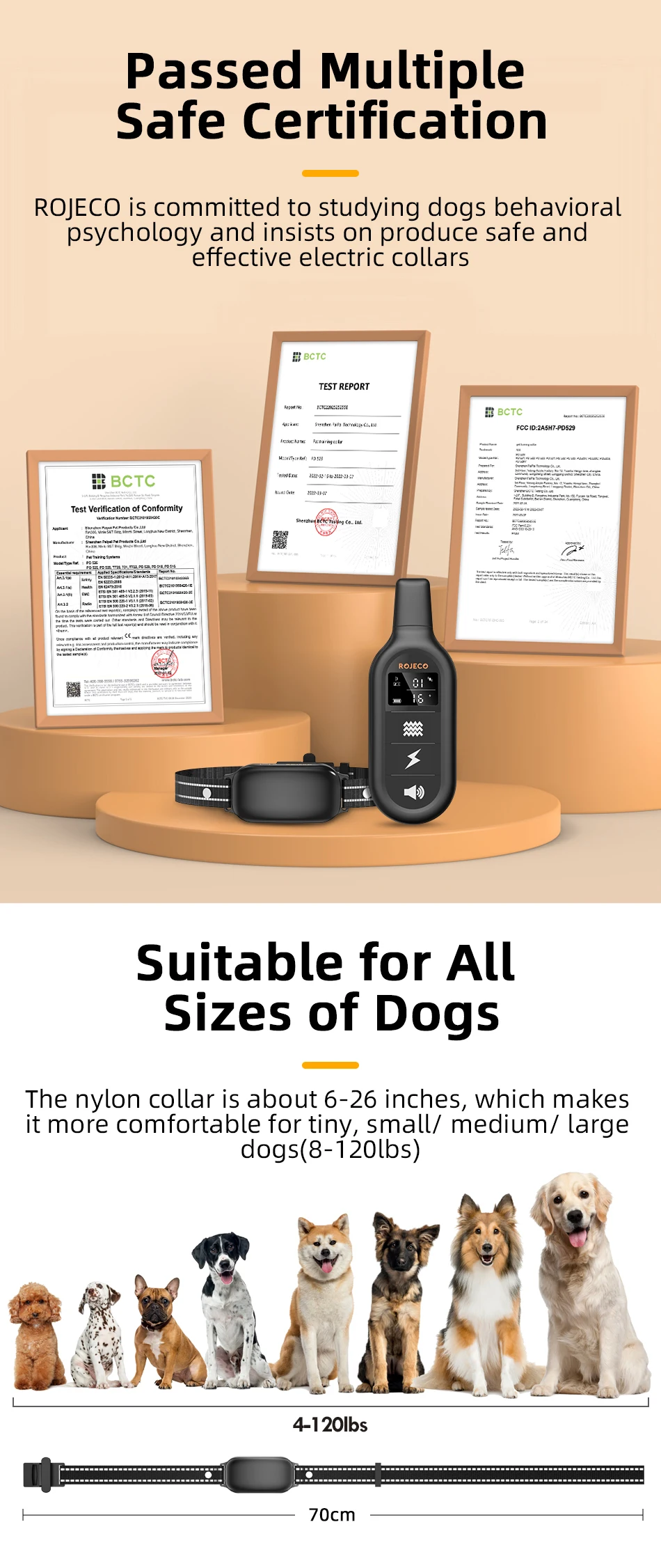 ROJECO Electric Dog Training Collar 3300ft Remote Control IPX7 Waterproof Vibrator Electric Pet Puppy Dog Bark Stop Shock Collar