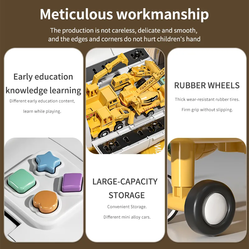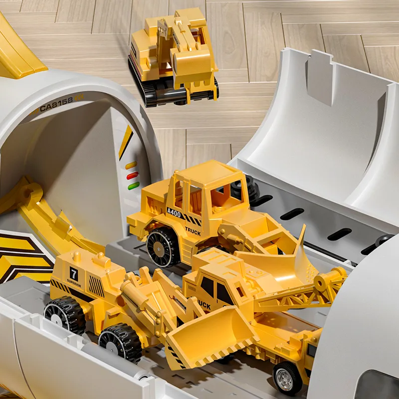 Abundant Functions – Our airplane has two slide rails allow vehicles to slide out of the cabin, and there has departure control button outside of the aircraft to control the cars slide forward or backward. Inertia glide design enables the aircraft to glide for a long distance on flat surfaces after being pushed.