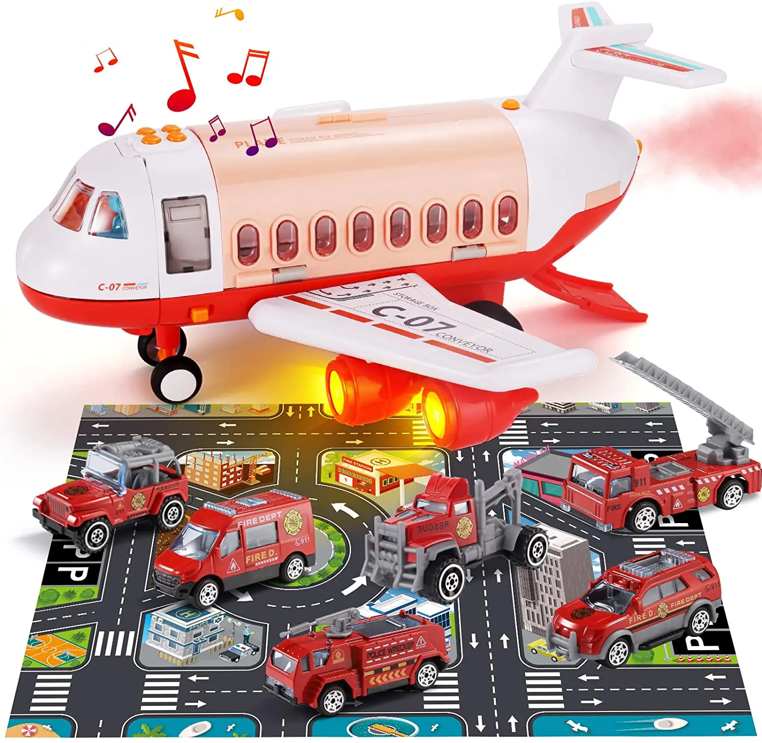 Super Value Play Set – The combination of a large plane and 6 mini engineering vehicles/(fire trucks) with other accessories in total 20 pieces toy set will bring more fun to your child than separate game. Now let’s experience double fun of plane and cars!